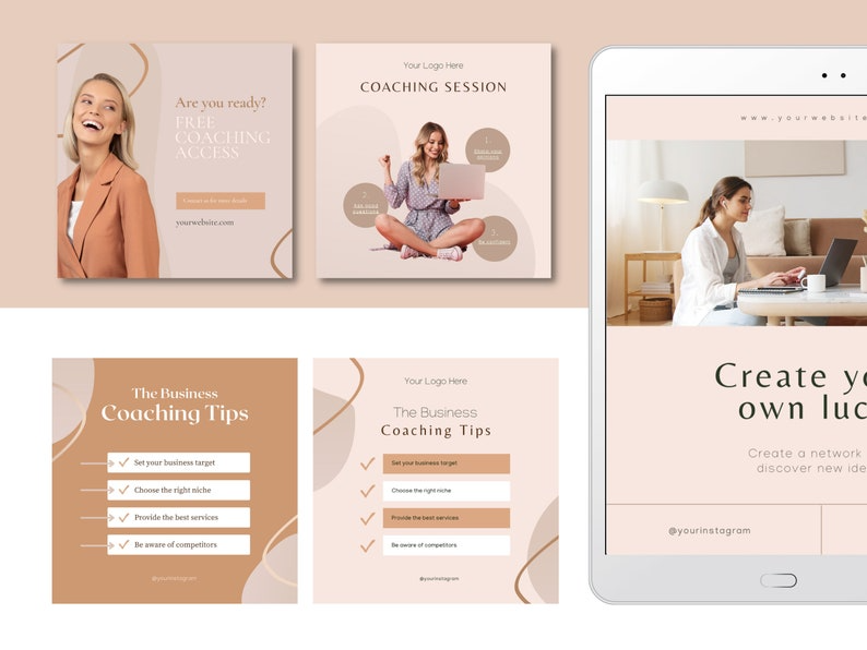 60 Coaching Instagram Templates for Canva | 30 Posts and 30 Stories Coaching Templates | Life Coach | Canva Template