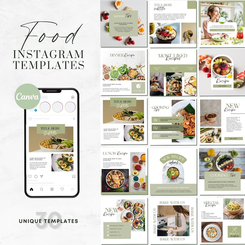 Food Instagram Template | Dietician Instagram Posts | Food Blogger Canva Template | Instagram